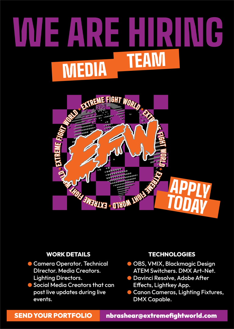 Extreme Fight World is currently looking for creative and technical individuals to join our production team! All positions are being sought out at this time.